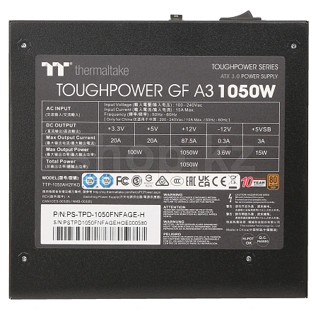 Серия Toughpower GF A3 сертифицирована по стандарту 80 PLUS Gold и совместима со спецификациями Intel ATX 3.0. Наличие нативного разъема 12VHPWR, обеспечивается основное питание для видеокарт новейшего поколения.