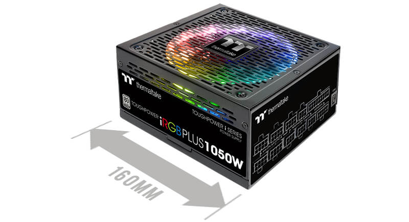 Благодаря небольшой глубине в 160 мм, Toughpower iRGB PLUS 1050W Platinum обеспечивает отличную совместимость и позволяет освободить больше места для удобной укладки кабелей. Помимо этого, больше свободного места положительно сказывается на эффективности вентиляции внутри корпуса.