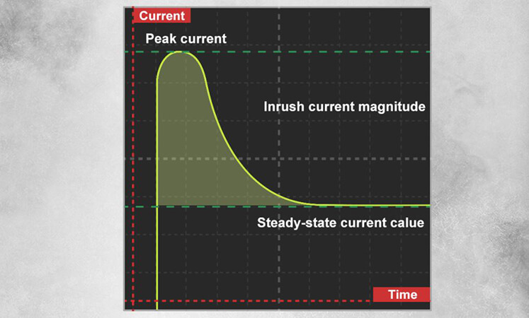 Пусковой ток - это максимальный мгновенный входной ток, потребляемый электрическим устройством при первом включении. Он возникает из-за высоких начальных токов, необходимых для зарядки конденсаторов, катушек индуктивности или трансформаторов. Мы следим за тем, чтобы его значение было ниже 50 А, чтобы избежать повреждения компонентов блока питания.