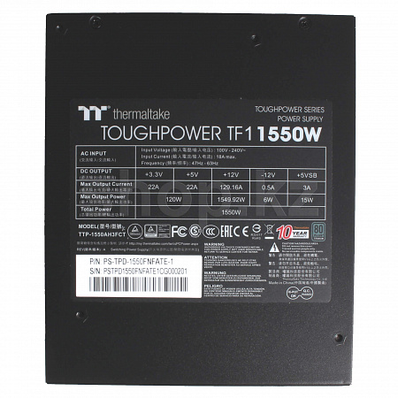 Toughpower TF1 1550W создан специально для оверклокеров и владельцев самых мощных систем, которым важна высочайшая мощность, стабильность и эффективность. Его характеристики поистине впечатляют: уровень пульсаций менее 30 мВ, отклонение напряжений на выходных линиях не более 2%, а время удержаний нагрузки без питающего напряжения около 16 мс. Схема блока питания имеет низкую переходную характеристику, систему низкого пускового тока (менее 50 А) и защиту от скачков выходного тока при перегрузке по линии 12 В. Благодаря своим высочайшим характеристикам, Toughpower TF1 1550W соответствует сертификату 80 PLUS Titanium и способен удовлетворить в полной мере требования самых требовательных пользователей и компьютерных энтузиастов.