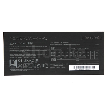Dark Power Pro 13 1600W имеет сертификат 80 PLUS Titanium с эффективностью преобразования энергии до 94,5% и обеспечивает множество преимуществ для вашей системы, включая меньшую потребляемую мощность, пониженный уровень нагрева и более тихую работу. Уровень потребления энергии в режиме «Ожидания» (Standby) составляет менее 0.1 Вт.