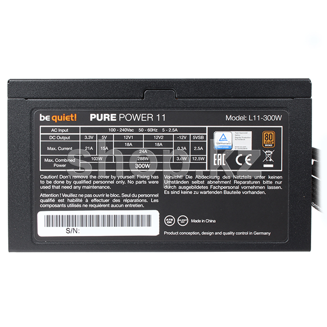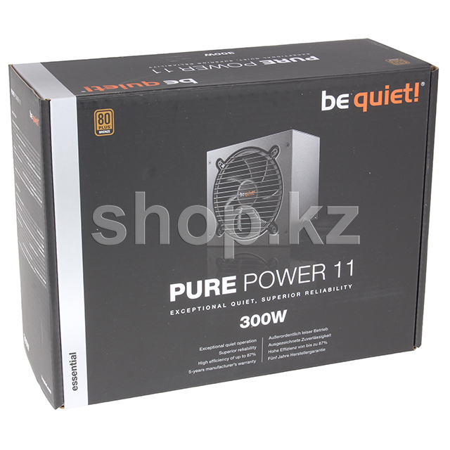 Pure Power 11 300W сертифицированы 80 PLUS Bronze с эффективностью до 87% - выдающийся уровень для этого класса БП. Самое важное преимущество - низкое энергопотребление обеспечивает экономию денег, пониженный нагрев и более тихую работу.