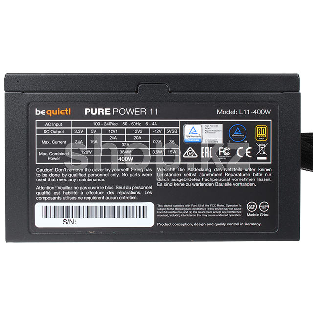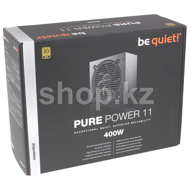 Pure Power 11 400W сертифицированы 80 PLUS Gold с эффективностью до 92% - выдающийся уровень для этого класса БП. Самое важное преимущество - низкое энергопотребление обеспечивает экономию денег, пониженный нагрев и более тихую работу.