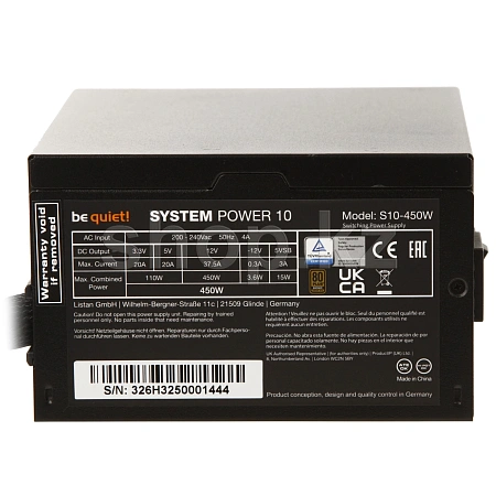 System Power 10 450 W бәсекеге қабілетті бағаға бағытталған, бірақ be quiet құрылғыларына тән жұмыстың дәлелденген сенімділігі мен тыныштығынан бас тартқысы келмейтін ДК құрастырушылары үшін арнайы жасалған!. System power 10 450W бастапқы деңгейдегі құрылғылар сегментіне температура режиміне байланысты өзгеретін айналу жылдамдығы бар желдеткіш және өте төмен қуат тұтыну сияқты бірқатар жетілдірілген мүмкіндіктерді әкеледі.