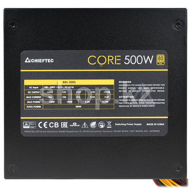 Chieftec CORE BBS-500S - в серии CORE, Chieftec выводит на рынок новый блок питания с сертификатом по КПД 80 PLUS Gold, гарантирующим лучшее соотношение цены и качества. Цель блоков питания серии CORE - это показать вызывающую уважение комбинацию производительности, КПД и надежности.