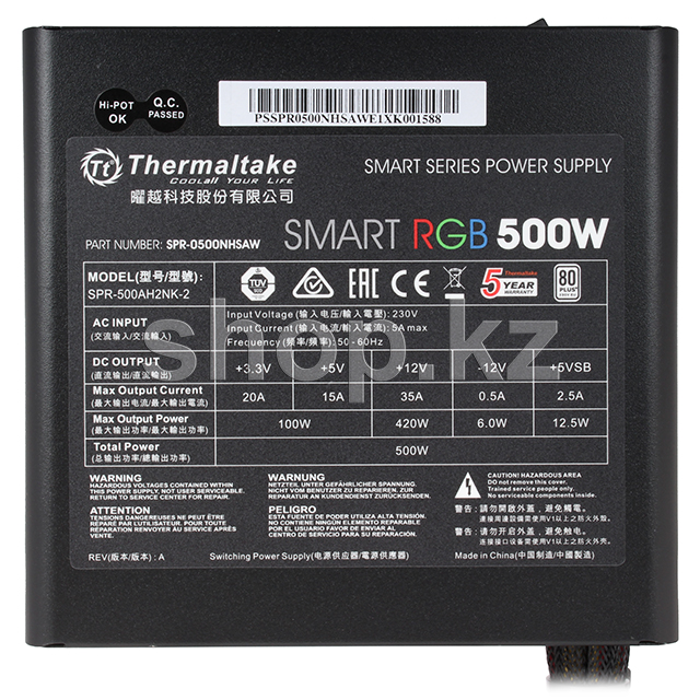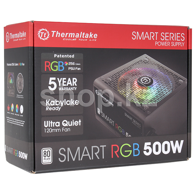 Компания Thermaltake, как пионер внедрившая RGB подсветку в блоки питания, представляет серию блоков питания Smart RGB. В блоки питания этой серии установлен вентилятор с RGB подсветкой на 256 цветов имеющий 15 различными режимов иллюминации. Благодаря встроенной памяти, выбранный режим сохранится после выключения ПК.