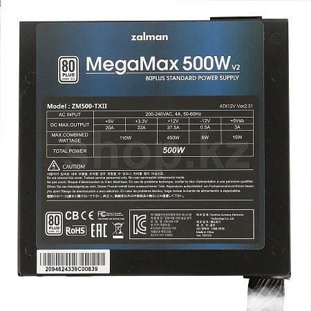 ATX 500 W Zalman MegaMax ZM500-TXII (V2) қуаттау блогы