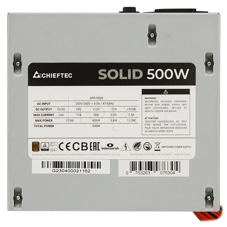 Chieftec SOLID 500W қуат көзі [GPP-5 00S] кеңсе немесе үй жұмыс жүйесінің жұмысының негізі болады. Құрылғы ATX форма факторына жатады, бұл оны кішігірім жүйелік блоктарға қолайлы етеді.