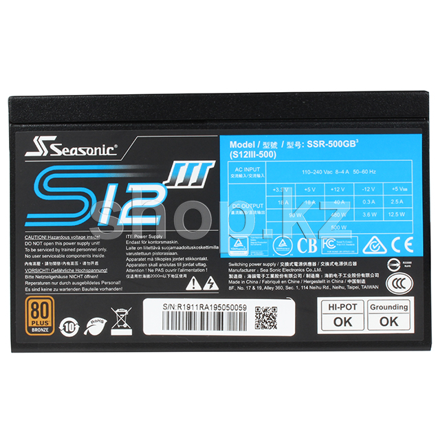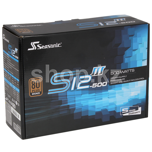 Блок питания Seasonic S12 III представлен в стандартном форм-факторе ATX и соответствует стандарту 80 PLUS Bronze, обеспечивая эффективность использования электроэнергии. Эта эффективность в сочетании с активной коррекцией коэффициента мощности позволяет использовать источники питания Seasonic S12 III для уменьшения потерь энергии, что приводит к экономии затрат на электроэнергию для ее пользователей. В дополнение к высокой эффективности блоки Seasonic S12 III используют конструкцию резонансного преобразователя LLC и ведущее в отрасли интеллектуальное и бесшумное управление вентиляторами (S2FC).
