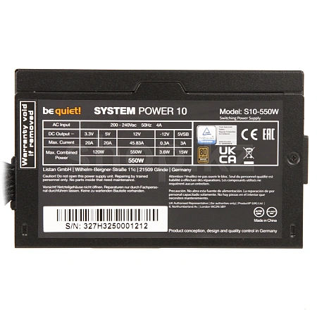 System Power 10 550 W оснащен качественным 120-мм вентилятором, изменяющим скорость вращения в зависимости от температурного режима, что обеспечивает знаменитый низкий уровень шума be quiet! для систем начального уровня.