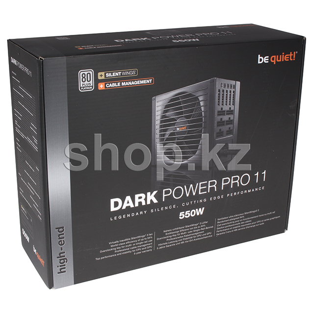 Dark Power Pro 11 обеспечивает 550 Вт реальной мощности с четырьмя независимыми линиями +12В для отличной стабильности сигнала и пятью разъемами PCI express для multi-GPU систем. Возможность подключения до четырех корпусных вентиляторов для регулировки их работы блоком питания.