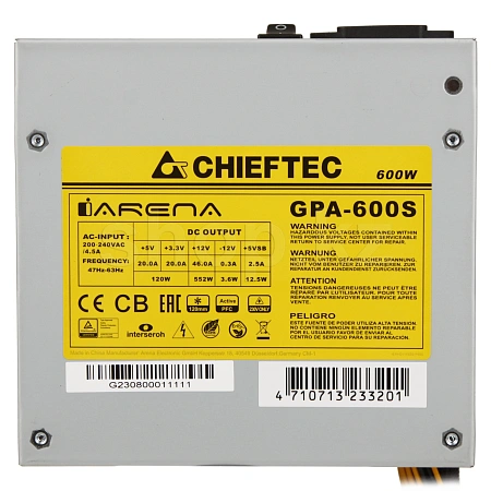 Модель GPA-600S относится к серии блоков питания CHIEFTEC iArena, что хорошо известна не только своей экономичностью и экологической безопасностью, но и соответствует спецификации стандарта ATX 12V 2.3. Благодаря высокому качеству изготовления, а также эффективности <80%, данный блок является одним из лучших в своём классе.