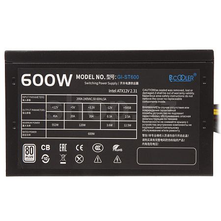 Блок питания PCCooler GI-ST600 подойдет для сборки практически любого ПК для дома или стандартного рабочего места в офисе благодаря своей высокой мощности. Формат ATX подразумевает установку в полноразмерный корпус.
