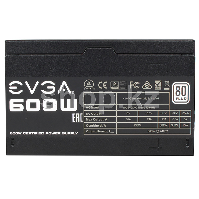 EVGA 600W қуат көзі тартымды бағамен тамаша таңдау болады. 600 Вт қуаты және 49 А дейін ток беретін +12 В бірыңғай қуат желісі бар EVGA 600W жүйенің барлық компоненттерін қуатпен қамтамасыз ете алады, ал өрілген дизайнам дизайн мен кабельдер ішкі кеңістікті бұзбауға мүмкіндік береді. 80 Plus Сертификаты.