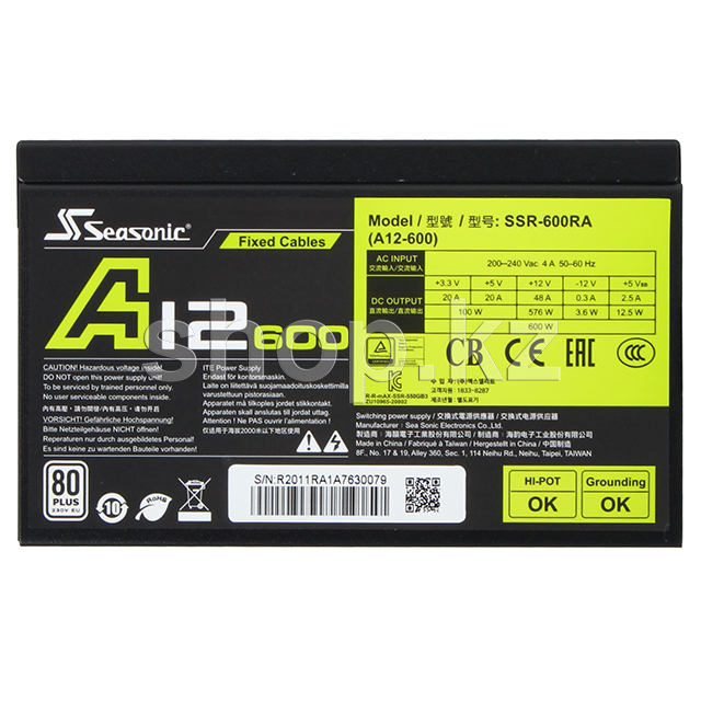 Сертификация 80 PLUS 230 В Сертификация 80 PLUS 230V EU обеспечивает эффективность более 82%, 85% и 82% при рабочих нагрузках 20%, 50% и 100% соответственно. Серия A12 от SeaSonic - это экономичный выбор с отличными характеристиками.