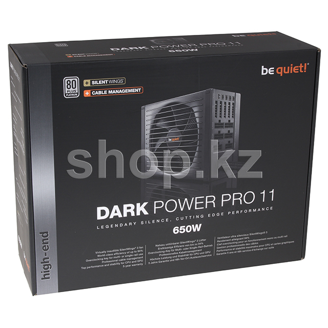 Dark Power Pro 11 обеспечивает 650 Вт реальной мощности с четырьмя независимыми линиями +12 В для отличной стабильности сигнала и пятью разъемами PCI express для multi-GPU систем. Возможность подключения до четырех корпусных вентиляторов для регулировки их работы блоком питания.