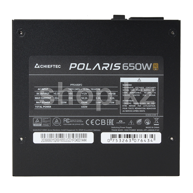 ATX 650W Chieftec Polaris PPS-650FC қуаттау блогы