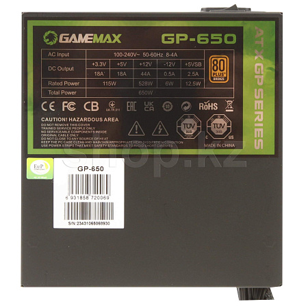 GameMax GP-650 — универсальный и надежный блок питания, который соответствует современным потребностям персональных компьютерных систем. Он обеспечит высокую надежность и эффективность с тихой работой — лучшая комбинация характеристик, производительности и качества в своем классе по отличной цене. В элементной базе блока питания GameMax применены надёжные и долговечные конденсаторы, а для предотвращения выхода блока питания из строя используется множество различных технологий защиты.