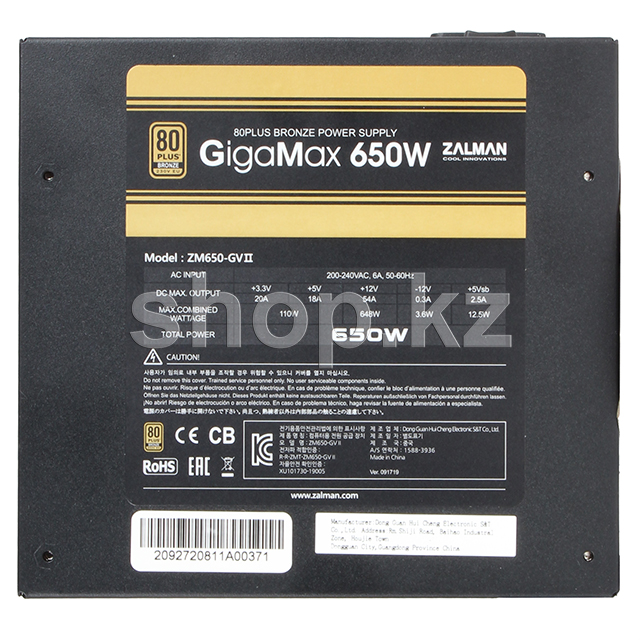 Zalman gigamax zm650-gvii қуат көзі жоғары сенімділік пен өнімділікке ие, бұл өнімділіктің бастапқы деңгейіндегі компьютерлерді құрастыруға мүмкіндік береді. Бұл модельдің номиналды қуаты-650 Вт. Шамадан тыс жүктемелерден, қысқа тұйықталудан, кернеудің төмендеуінен, сондай-ақ қызып кетуден қорғаудың арқасында бұл энергия көзі ұзақ уақыт жұмыс істеген кезде де компоненттердің қауіпсіз жұмысы мен қауіпсіздігін қамтамасыз етеді.