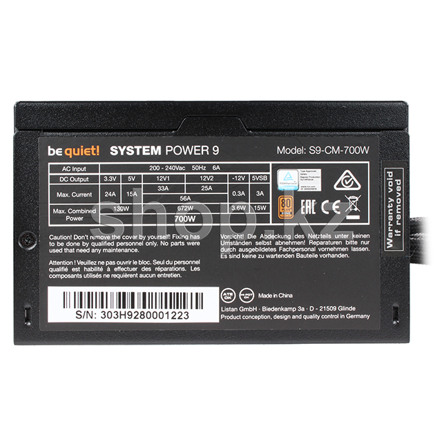 System Power 9 CM оснащен полностью черными высококачественными кабелями в оплетке, придающими привлекательный вид любому ПК. Модульная система кабелей позволяет отключить неиспользуемые кабели для аккуратного вида системы.