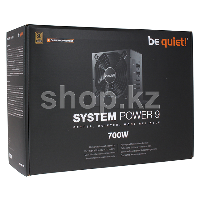 System Power 9 CM оснащен 120-мм вентилятором, изменяющим скорость вращения в зависимости от температурного режима, что обеспечивает знаменитый низкий уровень шума be quiet! для систем начального уровня.