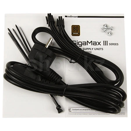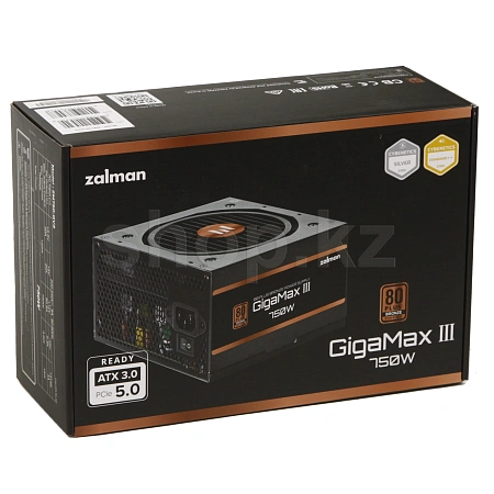Zalman GigaMax – незаменимая комплектующая, обеспечивающая полноценную работу стационарного компьютера. Форм-фактор ATX предусматривает размещение устройства в большинстве системных блоков. Сертификат эффективности 80 PLUS Bronze указывает на высокий КПД при нагрузке. Работа активного корректора коэффициента мощности стабилизирует подаваемое напряжение при его скачках или перепадах. Блок питания обладает такой высокой энергоэффективностью, что в режиме ожидания мощность блока питания менее 1 Вт, что позволяет избежать излишнего потребления энергии.