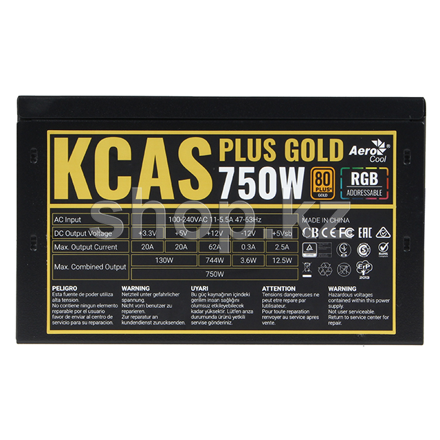 ATX 750W AeroCool KCAS Plus Gold 750W RGB қуаттау блогы