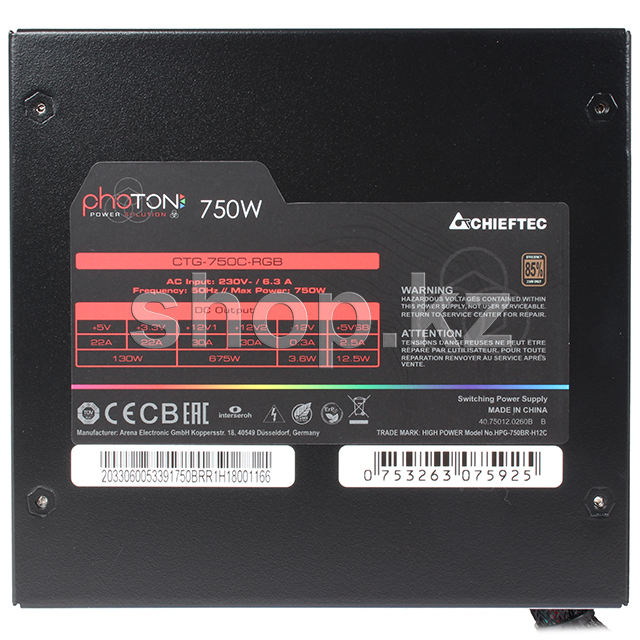 ATX 750W Chieftec Photon CTG-750C-RGB қуаттау блогы