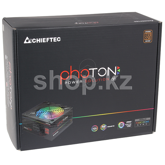Chieftec Photon CTG-750C-RGB 230 В жоғары жұмыс тиімділігін және RGB ойынының сәнді тұжырымдамасына толық сәйкес келуін қамтамасыз етеді. Блоктың салқындату жүйесі адрестік LED коннекторында +5 бар ең жаңа Rainbow RGB желдеткішімен ұсынылған.