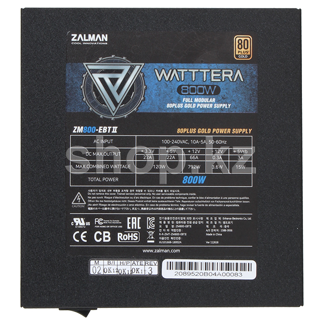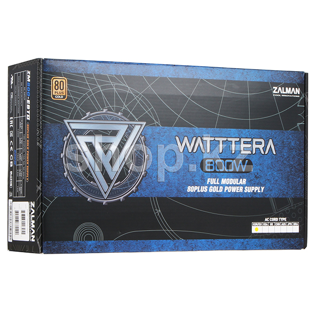 Zalman watttera 800W-ebtii қуат көзі компьютерлік жүйенің үздіксіз жұмыс істеуі үшін қолданылады. 800 Вт моделі 80+ Gold стандартына сәйкес келеді, бұл жоғары өнімділікті растайды.