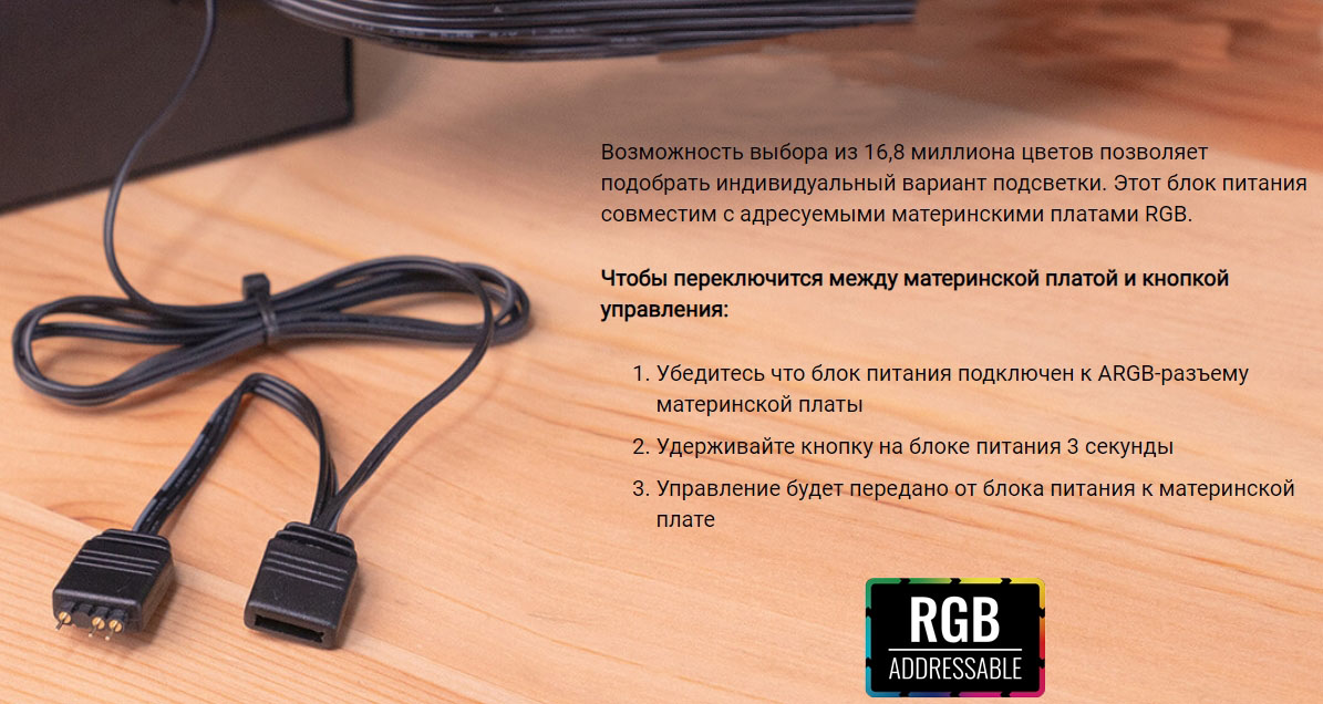 Совместим с адресуемой RGB-подсветкой 3pin 16,8 миллиона цветов