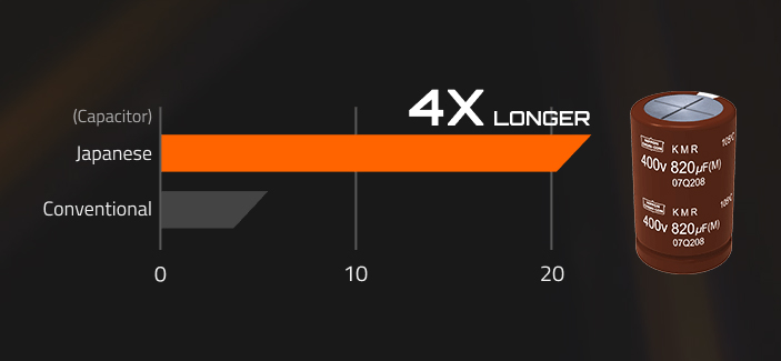 Во всех ключевых блоках схемотехники применяются высококачественные японские конденсаторы, которые обеспечивают безупречную эффективную работу и продолжительный срок службы изделия.