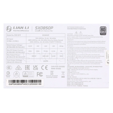 ATX 850 W Lian Li SX0850P, White қуаттау блогы