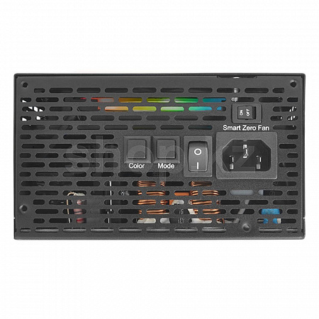 Для охлаждения блока питания используется вентилятор размером 140мм с запатентованной двух зонной кольцевой подсветкой(16,8 млн. цветов) с 18 адресными светодиодами.