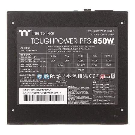 Серия Toughpower PF3 Platinum полностью совместима со спецификациями Intel ATX 3.0, что позволяет выдерживать скачок мощности до 200%, достигать эффективности до 70% при низкой нагрузке и соответсвовать требуемым временным задержкам при работе.