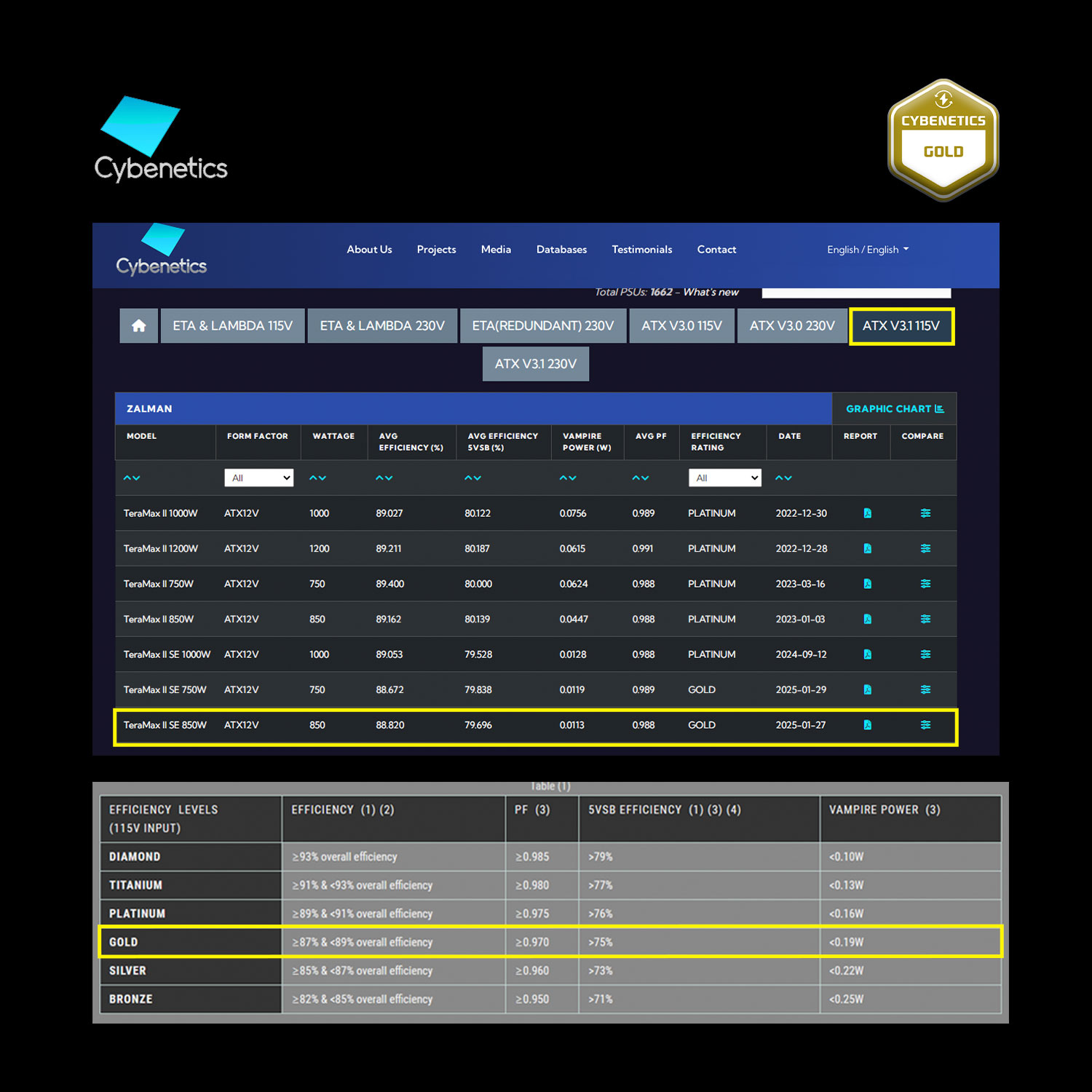 Блок питания TMX II SE 850W имеет сертификат энергоэффективности ETA