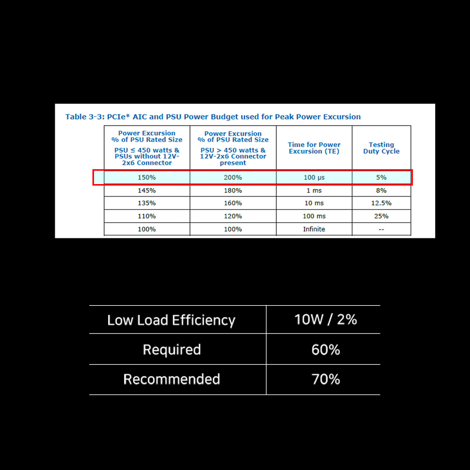 Бюджет энергопотребления PCIe* AIC и блока питания, используемый для расчета пикового энергопотребления.