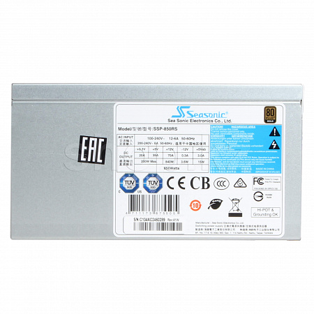 SSP-850RS использует схему активной коррекции коэффициента мощности (PFC). Все блоки имеют впечатляющий рейтинг эффективности 80 PLUS Gold, что означает, что энергоэффективность достигает 90% номинальной мощности при 115 В переменного тока и 50% нагрузке. Эти блоки хорошо защищены от короткого замыкания, перегрузки по мощности и перенапряжения.