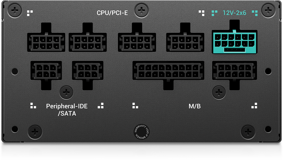 БЕЗУПРЕЧНЫЕ КАБЕЛИ. PS-P оснащен высококачественными кабелями, прошедшими сертификацию UI, с медными жилами и специальной оплеткой. Эти кабели соответствуют строгим стандартам безопасности, а прокладывать их — одно удовольствие. Благодаря двухцветным гнездам 12 В-2×6 пользователям легко убедиться в правильности установки.