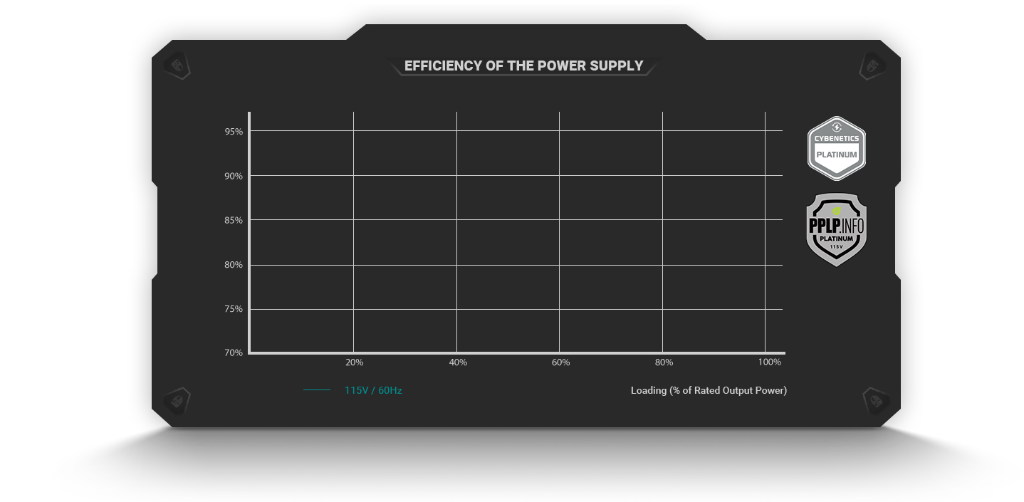 ПЛАТИНОВЫЙ СТАНДАРТ. Соответствие стандарту Platinum, подтвержденное Cybenetics и PPLP, гарантирует высокую энергоэффективность на уровне 92% при типичной нагрузке 50%.