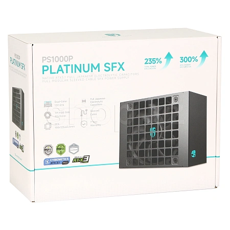 СЕРТИФИКАЦИЯ ATX 3.1 Серия PS-P Series прошла официальную сертификацию Cybenetics и PPLP на соответствие стандарту ATX 3.1. Эти блоки питания способны выдавать до 235% общей мощности системы и 300% номинальной мощности через разъем 12 В-2x6 в течение 0,1 мс, превосходя требования стандарта Intel ATX 3.1.