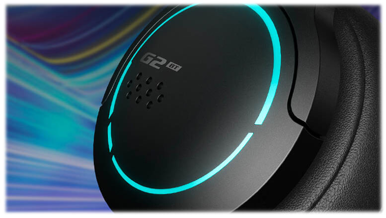 Геймерская гарнитура G2BT оснащена технологией динамической RGB-подсветки с многоцветным эффектом (не настраивается).