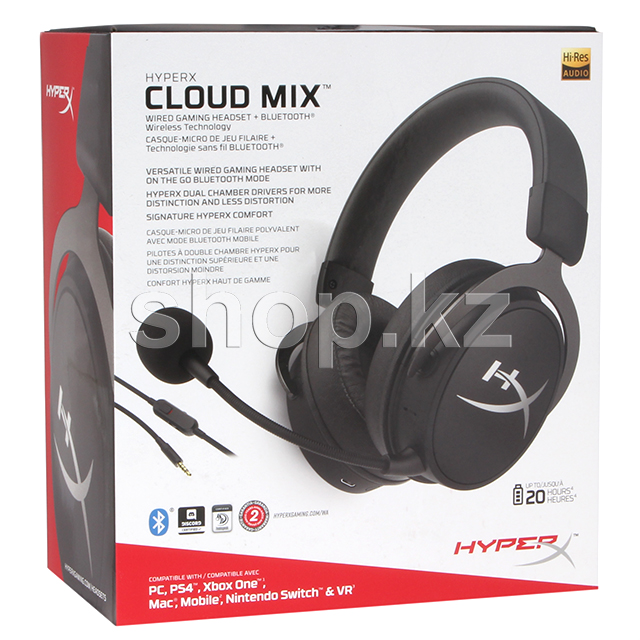 HyperX Cloud Mix - это многофункциональная проводная гарнитура, которая легко превращается в легкую и портативную гарнитуру Bluetooth. Во время использования проводного соединения, она выдает все богатство звука Hi-Res Audio на частотах от 10 Гц до 40 кГц, чтобы вы смогли услышать все детали и нюансы звука, которые иначе могли бы пропустить. Решив вернуться в реальность, вы сможете отвечать на звонки и переключаться в беспроводной режим Bluetooth, в котором сможете находиться до 20 часов.