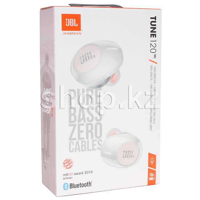 Беспроводные наушники JBL TUNE 120TWS. Они отличаются ярким дизайном и мощным звуком благодаря излучателю 5.8 мм с технологией JBL Pure Bass. Эти наушники-вкладыши с элегантным портативным чехлом с функцией зарядки дарят 16 часов безграничного музыкального удовольствия.