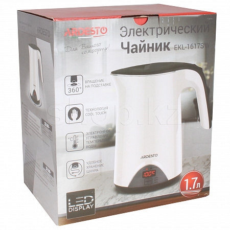 Электрочайник белого цвета с функцией поддержки температуры, двойными стенками, LED-дисплеем и защитой от перегрева. Объем чайника EKL-1617SW составляет 1.7 литра, а подставка обеспечивает оборот на 360°. Материал корпуса – надежный и долговечный поликарбонат. Для комфортного использования есть удобная ручка.