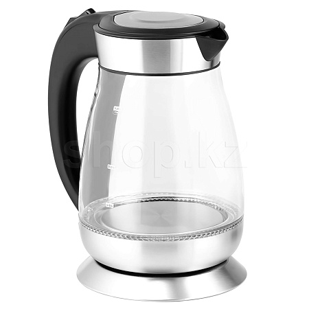 Корпус выполнен из экологически чистого стекла, крышка и подставка – из пластика с отделкой из нержавеющей стали. Пластиковая ручка чайника не перегревается и не скользит в ладони во время использования.