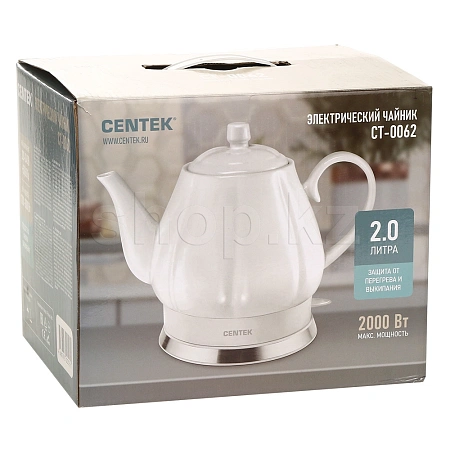 Чайник Centek CT-0062 – качественное и надежное изделие объемом 2 л и мощностью 2000 Вт, которое кипятит воду за несколько минут. Скрытый нагревательный элемент дает ряд весомых преимуществ перед моделями с открытой спиралью.