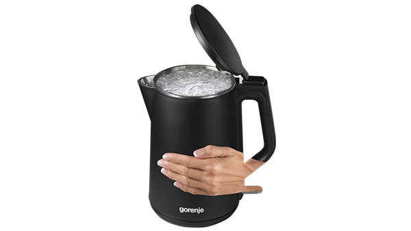 Вы можете приготовить вкусную чашку чая или кофе, используя всего одну руку. Крышка открывается легким нажатием на кнопку, а специальная конструкция крышки с защитой от протекания гарантирует, что ни одна капля горячей воды не прольется из емкости.
