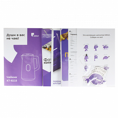 Для домашнего чаепития! Чайник Kitfort КТ-6115 отлично послужит для чаепития дома, в офисе или на даче! Он может вскипятить воду или нагреть её до температуры 40, 60, 85, 90 или 100 °С, что удобно при заварке различных сортов чая, приготовлении кофе и подогреве детского питания. |