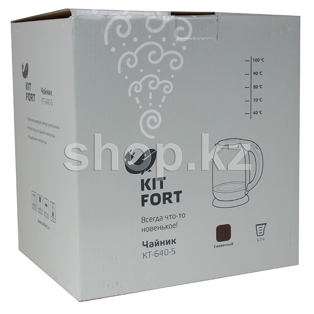Электрический чайник с электронным терморегулятором Kitfort КТ-640 может не только вскипятить воду, но и нагреть ее до температуры 40, 70, 80 и 90 °С, что очень удобно при заваривании различных сортов чая. Температура 40 °С пригодится для приготовления детского питания. Температура воды контролируется встроенным в дно чайника термодатчиком.